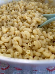- Cook the elbow pasta two minutes less of al dente according to package instructions. Remove from heat, drain and toss with olive oil. Set aside.